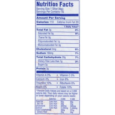 39 wonder bread nutrition facts label
