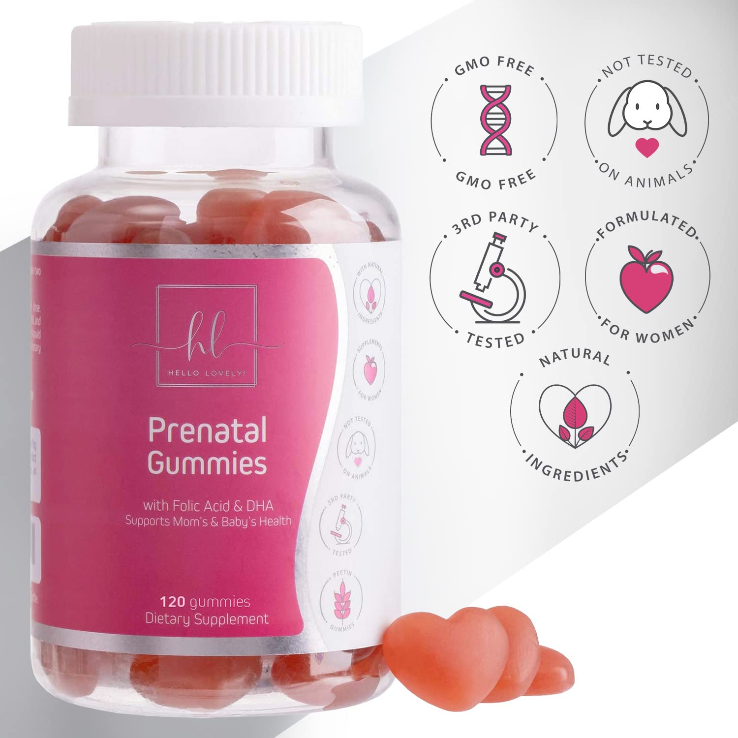 Hello Bello Prenatal And Dha Gummies - 60ct : Target Highlights. Contains 12 essential vitamins and minerals including: Omega-3 for brain development*, Folic Acid for fetal development* and Vitamin B6 for maternal health*. EXTRA DELICIOUS NUTRITIOUSNESS: Natural fruity flavors make taking Hello Bello vitamins a delight instead of a drag - making it easier for you to help fill nutritional gaps.