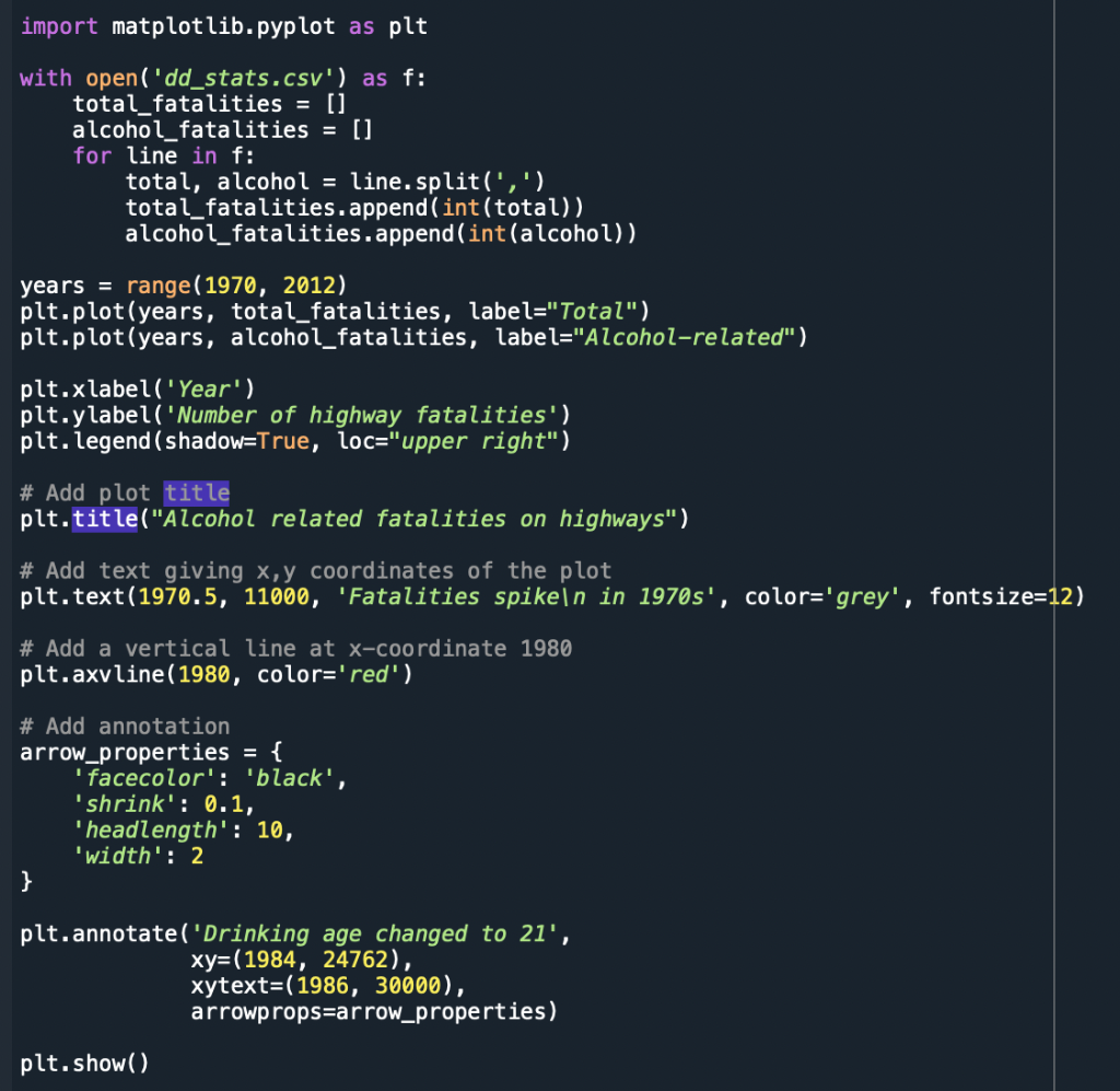 Matplotlib Title Font Size - Python Guides 13 Oct 2021 — In Matplotlib, to set the title of a plot you have to use the title() method and pass the fontsize argument to change its font size. The syntax ... How to change the font size on a matplotlib plot - Stack Overflow You can do something like for label in (ax.get_xticklabels() + ax.get_yticklabels()): label.set_fontsize(22) to affect text size in a single figure. – Terry ... How to change the font size of the Title in a Matplotlib figure 26 Aug 2022 — As we use matplotlib.pyplot.title() method to assign a title to a plot, so in order to change the font size, we are going to use the font ...