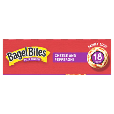 9ct Mini Cheese Pepperoni Pizza Snacks | Bagel Bites With real melted cheese and pepperoni, our cheese and pepperoni Bagel Bites (9ct) let you snack anytime. Find out where to buy at a store near you. ... Nutrition Facts. Serving size 4 pieces (88g) Servings Per Container 1. Amount Per Serving. Calories . 190 . Calories From Fat. 50 % Daily Value* Total Fat 6 G. 9 %. Saturated Fat 0. 0%.