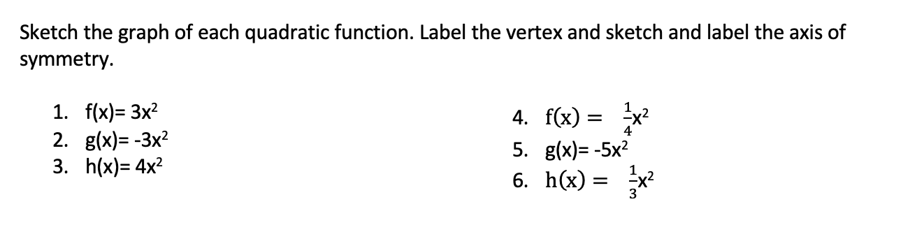 For problems 1 – 6, graph each function. Label the vertex and ...
