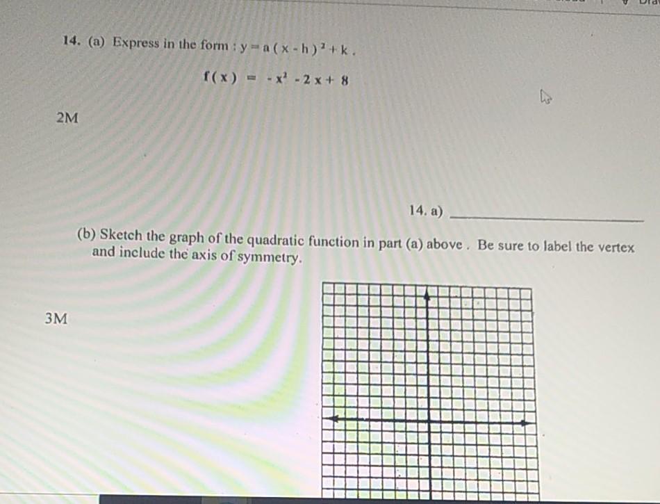 Solved 14. (a) Express in the form : y = a (xh)+k. f(x ...