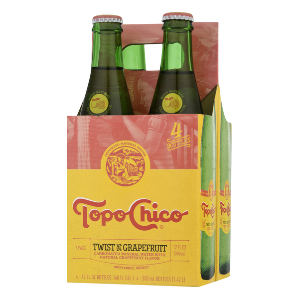 Topo Chico Twist of Grapefruit Sparkling Mineral Water - 4 pk Ingredients. Mineral Water, Carbon Dioxide, Citric Acid, Natural Grapefruit Flavor. Warnings. Handle with care, product has high carbonation.